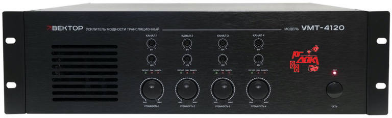 Усилитель мощности 4х120Вт/100В,70В выход или 4-16 Ом. Линейные вход /выходы,(разъем тип Phoenix). Индикация режимов работы усилителя. Регулировка уровня выходного сигнала, регулировка НЧ\ВЧ, многоступенчатая защита. Питание 220-230В/50-60 Гц. Высота U. Вес кг