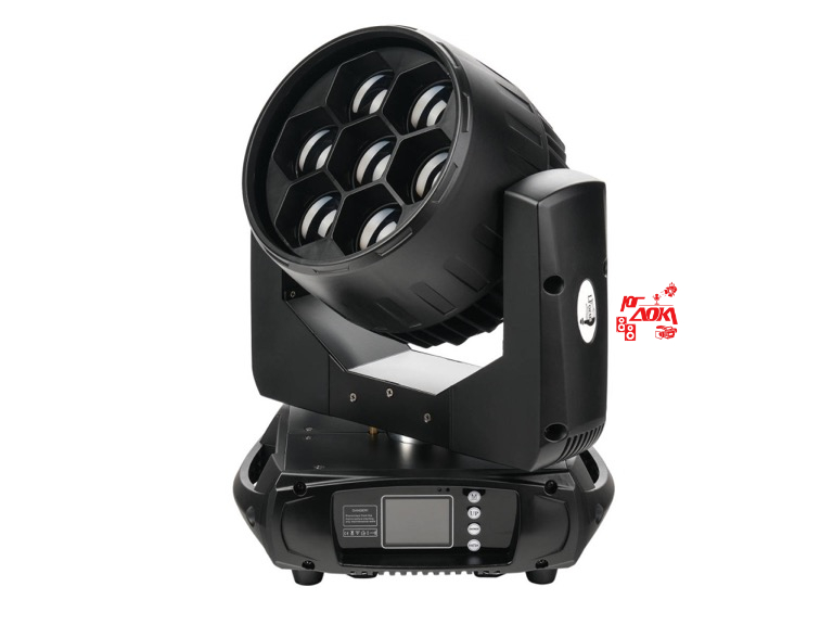 Полноповоротный прожектор типа Wash, 350Вт, 4025Лк@3м, RGBW, IP20, LFocus BR-740P • Питание: AC90-260 В переменного тока, 50/60 Гц. • Номинальная мощность: 350 Вт при 220 в. • Источник света: 7 светодиодов RGBW 7x40Вт 4-в-1. • Срок службы светодиода: 50000 ч. • Угол луча: 6 - 60° • Освещенность: 25300Лк на 1м, 4025Лк на 3м • Цветовая температура: 2700 - 8000 К • Угол поворота: ◦ В горизонтальной плоскости: 540° ◦ В вертикальной плоскости: 270° • Частота стробоскопа: 0 - 25 Гц • Регулировка яркости: Линейная 8/16 бит • Наличие зум: Да • Уровень шума: 55Дб • Система охлаждения: Активная • Управление и программирование: ◦ DMX512, RDM ◦ режим синхронного управления Master/Slave ◦ режим авто ◦ режим сцены ◦ звуковая активация • Каналы управления: 14/20/44/50 каналов • Степень защиты: IP20 • Корпус: Термостойкий огнеупорный пластик • Вход питания переменного тока: PowerCon • Вход/выход данных DMX: 3-контактный XLR с фиксацией • Масса: 12 кг • Температура окружающей среды: От -35°C до +45°C • Габариты: 307 x 224 x 397 мм • Размеры упаковки: 410 x 305 x 415 мм • Стандартная комплектация: Кабель питания, страховочный тросик, сигнальный кабель DMX, встроенный кронштейн для подвешивания.