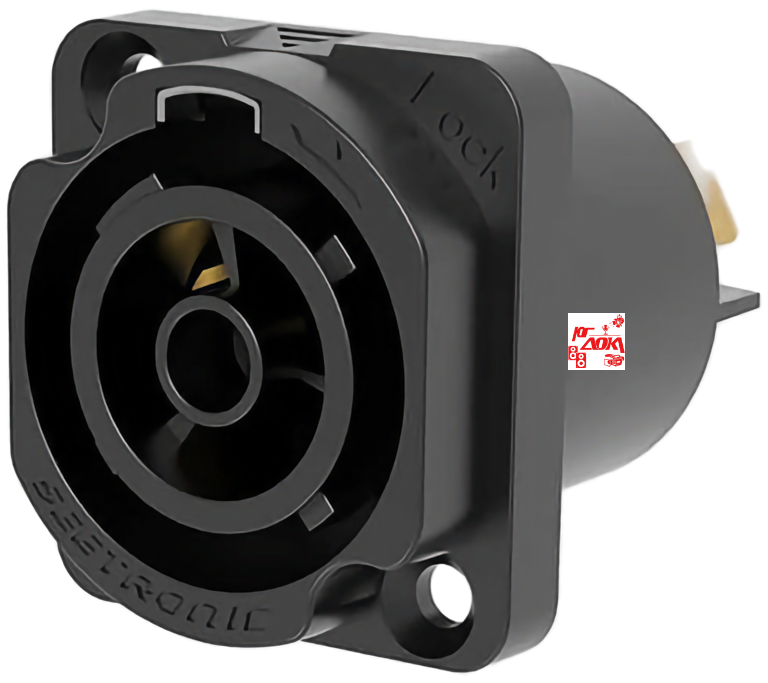 Прочный и надежно герметичный панельный 3-контактный разъём типа Powercon, мама, используемый для электрического подключения в уличных условиях, со степенью защиты IP67. Высокая токовая нагрузка, рассчитанная на 16 А/250 В переменного тока VDE и 20 А/300 В переменного тока UL.