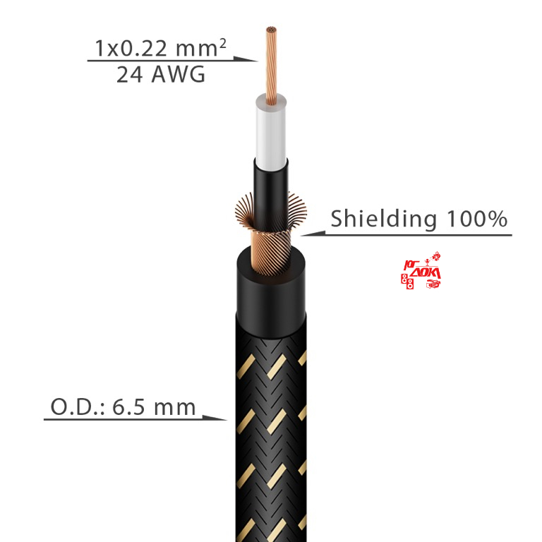 Кабель инструментальный на катушке (100м.), 100% Экранирование (медная спираль: 48x0.10мм + гальваническая изоляция), D 6,5мм, цвет Черныщ-красный, Температурный режим эксплуатации: -20/+70,