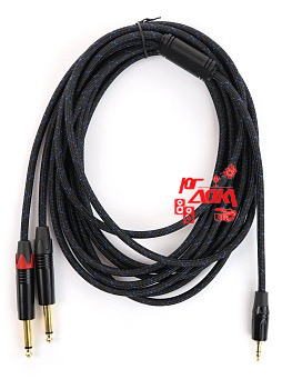 аудио Y-кабель jack 3.5мм <-> 2 x jack 6.35мм Длина кабеля: 3 м.; Длина разъединенной части: 2,8 м.