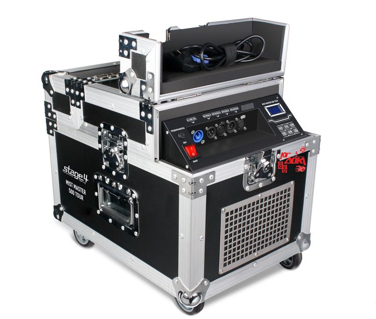 Генератор тумана компрессионного типа. Версия в туровом исполнении. Макс потребляемая мощность 660Вт. Емкость для жидкости 2,5л. DMX512 (1/2/4 канала), панель управления с LCD дисплеем. Таймер, регулировка мощности, интервалов и выброса тумана. Производительность 90 мᶟ/мин. Макс расход жидкости 0,8 мл/мин. PowerCon. Габаритные размеры (ШхВхГ) 530х380х380мм. Масса 31кг. Поставляется в кейсе.