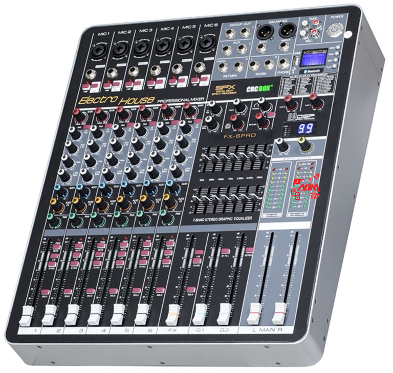 Аналоговый микшер, 6 входов, 2 стерео выхода, 2 группы, 2 шины, 1 FX