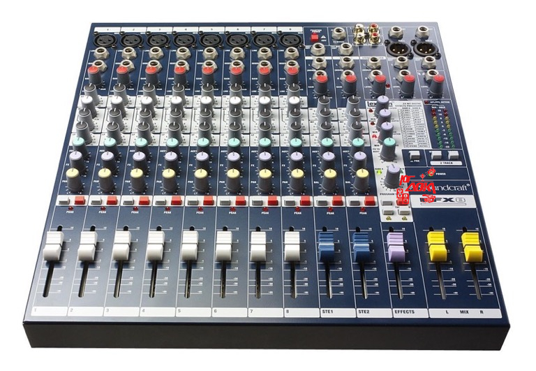 Микшерная консоль со встроенными эффектами, 8 моноканалов + 2 стерео-канала, встроенный процессор Lexicon с 32 пресетами и 3-мя регулируемыми параметрами, кнопкой TAP
