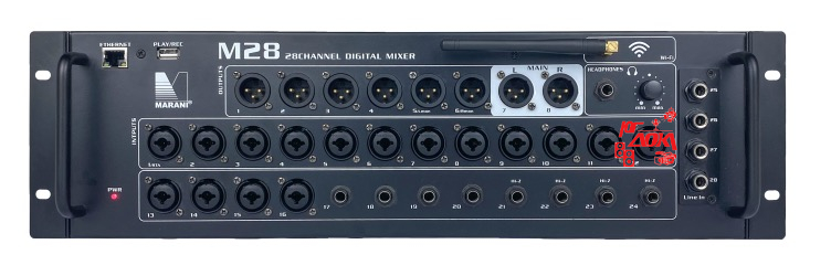 рэковый микшерный пульт, 28 входных каналов : 16x мик/линейных + 8x линейных, 4 входных к