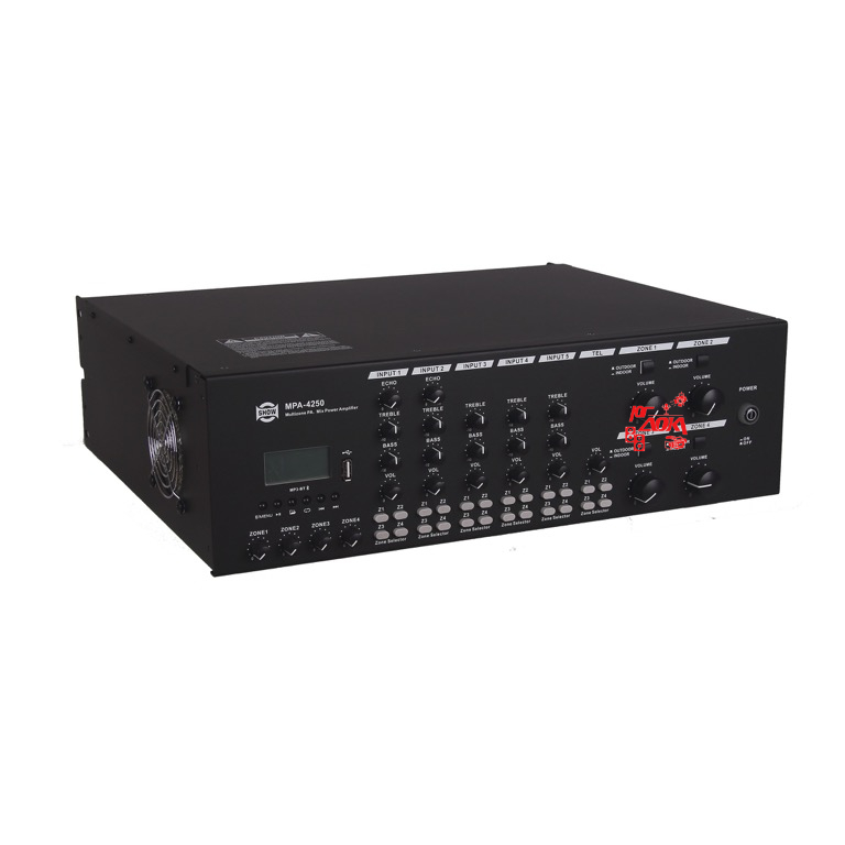 четырехзонная трансляционная система, 4х250Вт, 70/100 В, 4Ома, MP3/Bluetooth