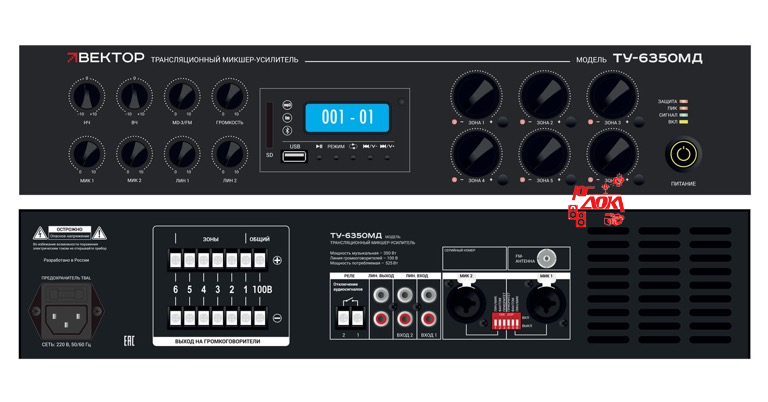 Комбинированный микшер-усилитель класс D, 6 зон c регулировкой уровня выходного сигнала. Мощность 350 т/100В. 2 микр, с фантомным питанием и выбором приоритета 2 лин входа, 1 Aux вых. Цифровой AM\FM тюнер, MP3 плеер, Bluetooth. ИК-пульт в комплекте. Функция аварийного отключения. Питание 220В. Рэковое крепление в комплекте.