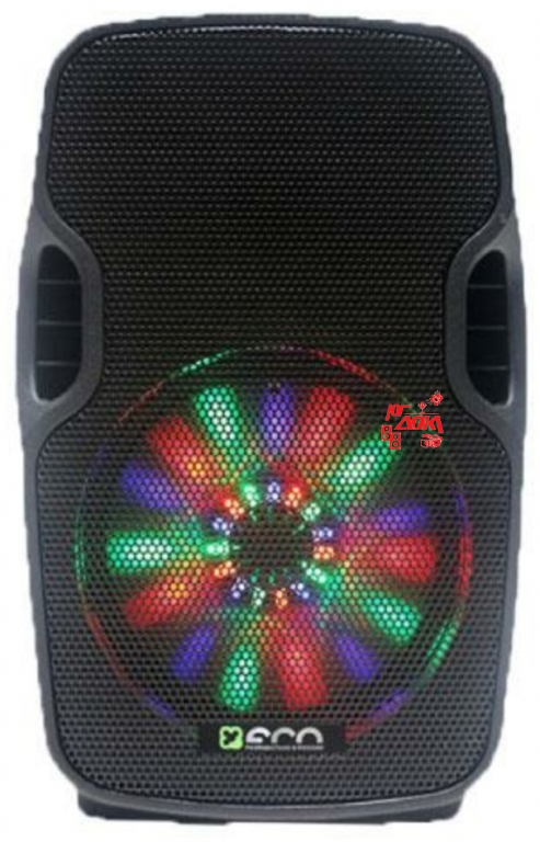 Активная двухполосная портативная акустическая система со встроенным аккумулятором с LED подсветкой Напряжение питания 13.2 В\ 230В Предохранитель 1.6 А ВЧ динамик 1” НЧ динамик 15” Выходная мощность 200 W max Частотный диапазон 55-20KHz
