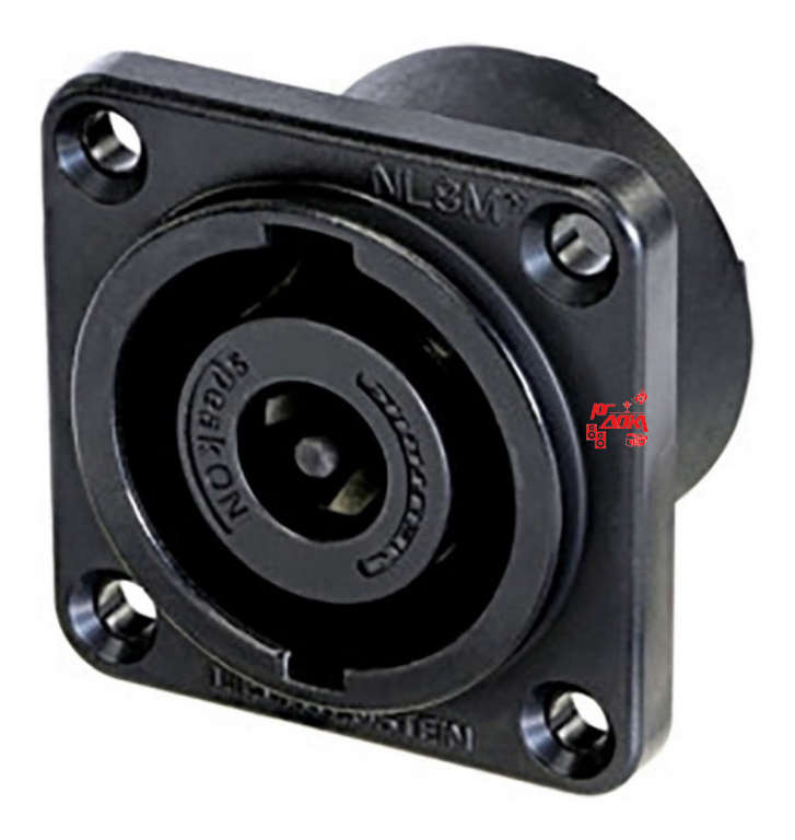 панельный разъём Speakon male 8-контактный, квадратный фланец, черненый металлический корпус, контакты под клеммы Faston 4,8мм