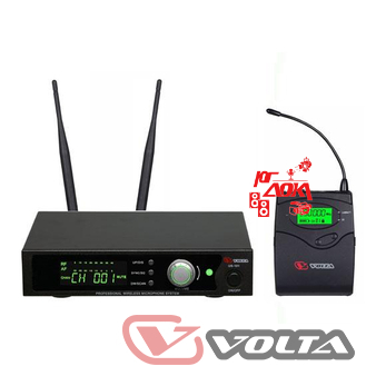 VOLTA US-101H with aluminuim case (592-611.8MHz) Микрофонная 100-канальная радиосистема с головным микрофоном UHF диапазона . PLL-synthes, LCD-дисплей, True Diversity, 1/2 19" рэк, алюминиевый кейс. В состав комплекта входит петличный микрофон.