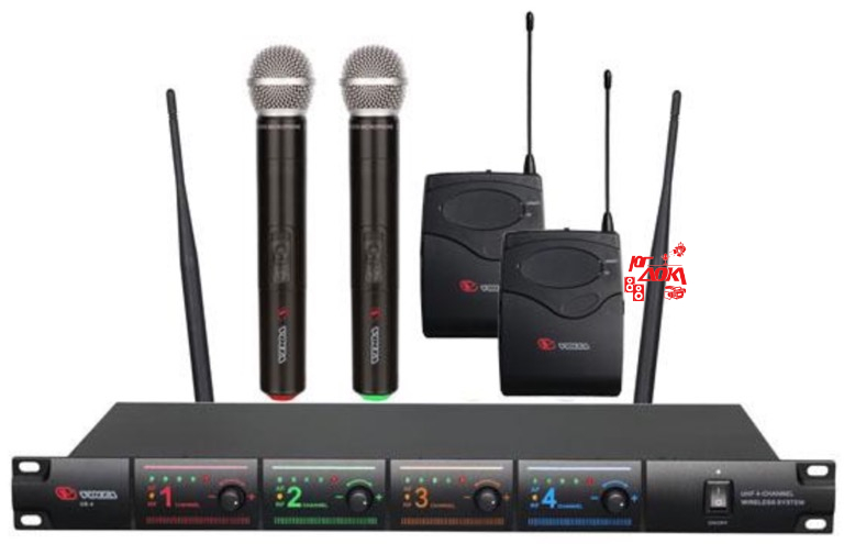 Микрофонная радиосистема с двумя ручными и двумя головными микрофонами UHF диапазона с фиксированной частотой. LCD-дисплей, True Diversity, Plug&play.