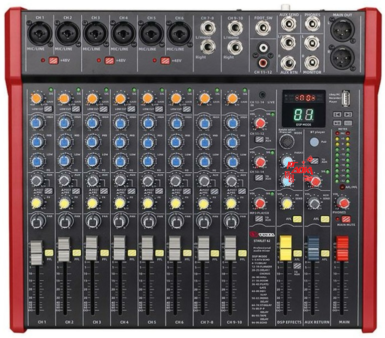 Компактный микшерный пульт с многоформатным аудиоплеером, цифровым процессором эффектов и аудиоинтерфейсом. 100 программный цифрововой процессор эффектов, трёхполосные эквалайзеры входных каналов, многоформатный аудиоплеер (USB+Bluetooth) и аудиоинтерфейс для работы с ПК.