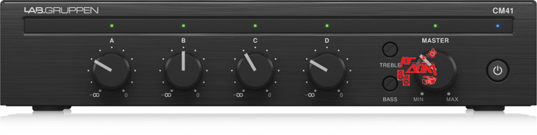 микшер моно, 4 mic/line, вход приоритета, дакинг, Euroblock, 3 x RCA L/R в mono, крепление в рэк, подкл. настенного регулятора