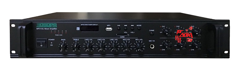 Микшер -усилитель, со встроенным источником аудиосигнала: цифровой AM/FM тюнер,МР3 плеер, USB-порт, 6 зон c регулировкой уровня выходного сигнала, 120 Вт/100В, 4 микрофонных входа, 3 Aux входа, 1 Aux вых., индикация уровня выходного сигнала