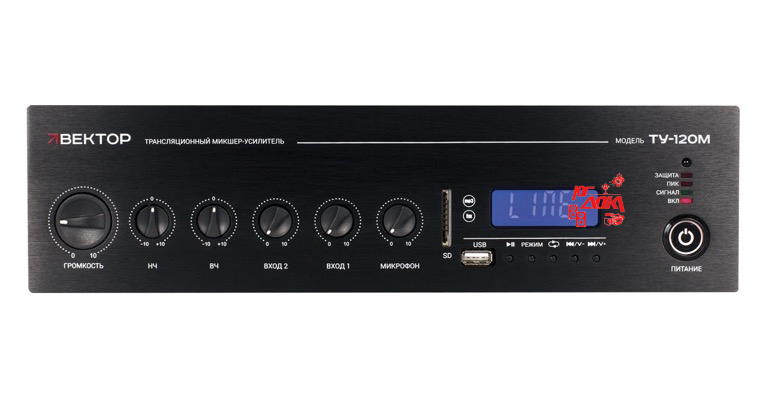 Комбинированный микшер-усилитель. Мощность 120Вт. Выход 100 В\4-16 Ом, 1 микр и 2 AUX входа, 1 AUX выход. Цифровой FM тюнер, MP3 плеер, USB, SD, Bluetooth. Питание 220 В. Рэковое крепление в комплекте.