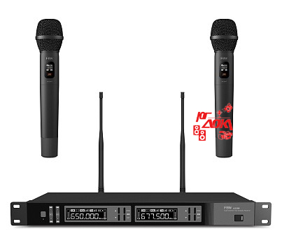 радиосистема, комплект из диверситивного приёмника A220R и двух передатчиков A100HT, 512-562МГц, FM-модуляция, 2/10/30мВт, 3 уровня Squelch, индикация батареи, 50Гц-15кГц