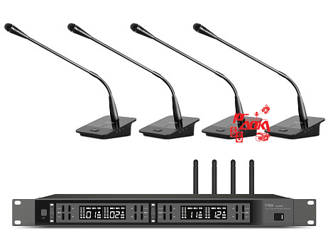 четырёхканальная радио конференц система, приёмник A140R + 4 передатчика A100CT, 4 выхода XLR, 1/4" Jack (микс), 512-562МГц, FM-модуляция, 2/10/30мВт, 3 уровня Squelch, индикация батареи, 50Гц-15кГц