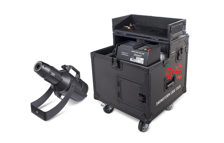 STAGE4 - SNOWSTORM 1300 TOUR (MK2). Профессиональный сценический генератор снега в туровом кейсе. Версия второго поколения. Сокращенное время очистки, возможность установки распылителя ниже основного блока. Максимальная потребляемая мощность 1250Вт. Емкость для жидкости 20л. DMX512 (1/3/5 каналов), RDM. Сенсорный дисплей. Таймер, регулировка мощности, интервалов и выбросов снега. Дальность выброса 12м. Максимальный расход жидкости 500 мл/мин. TrueCon. Габаритные размеры (ШхВхГ) 540х535х623мм. Масса 35кг.