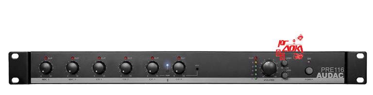 Компактный однозонный стереофонический микшер-предусилитель. Входы: 2 микрофонных симметричных входа с фантомным питанием, 1 линейный симметричный стереовход и 3 линейных несимметричных стереовхода. Третий входной канал оборудован интегрированным приемником Bluetooth. Вход сухого контакта для активации режима Mute. Питание от сети 220В. Размеры (ШхВхГ): 482 х 44 (1U) х 335 мм. Вес: 3,6 кг.