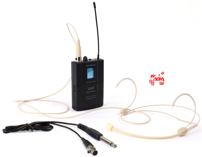 передатчик поясной V2, цифровой, микрофонный/инструментальный вход, для приёмников STAGE 201DR/202DR, с головной гарнитурой, программирование по ИК порту, 2 x AA