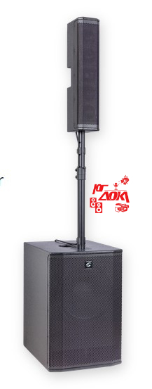Акустическая система активная, Активный сабвуфер с динамиком 12". Колонна с 4 полнодиапазонными драйверами 3,5" и компрессионным драйвером 1". Колонна, стойка и кабели хранятся внутри сабвуфера. НЧ мощность 600 Вт, ВЧ мощность 400 Вт. 4 предустановки (плоская, живая, громкость, DJ) с ограничителем. Подключение Bluetooth с функцией TWS. Легкость конструкции и удобство установки. В комплекте регулируемая стойка, кабели и чехол.