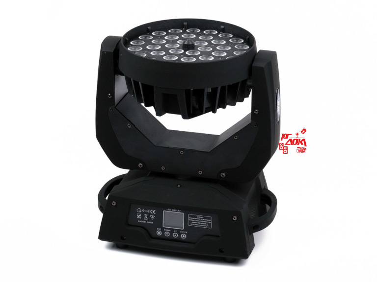 Моторизированная световая "голова" Wash Zoom, RGBW, Мощность: 36х10Вт 4-в-1. Общая мощность: 350Вт. Питание: 110-220В 50-60Гц. Режимы управления: авто, звуком, DMX. Цвета: RGBW красный, синий, зеленый, белый. Угол раскрытия луча: 8°-40°Zoom. Pan: 540° 16bit. Tilt: 270° 16bit Packing Size: 420*330*460mm N.W/G.W: 10KG/11KG