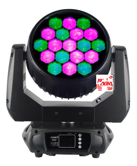 Поворотная "голова" типа WASH / LED 19x30 Вт RGBW 4-в-1 / Линейный зум 6°-60° / Индвидуальное управление пикселями / Линейный диммер 0-100% / Стробоскоп 1-25 р/с / СТО / СТВ / 2700К-8000К