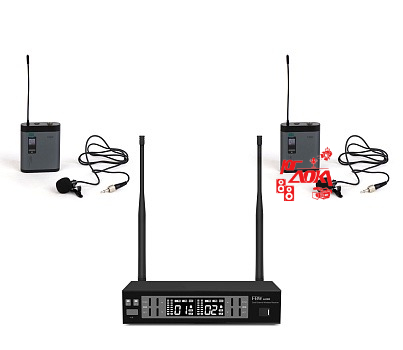 радиосистема, комплект из приёмника A20R и двух поясных передатчиков A100BT, 512-562МГц, FM-модуляция, 2/10/30мВт, 3 уровня Squelch, индикация батареи, 50Гц-15кГц