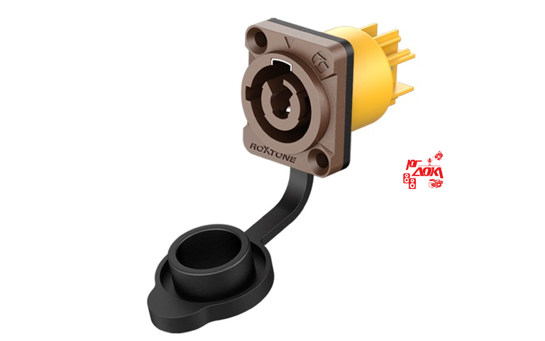 Разъем кабельный типа powercon, пыле и влаго защищенный, контакт: посеребренная бронза, 3-х контактный, Цвет: Коричневый.