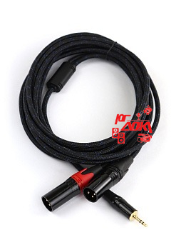аудио Y-кабель jack 3.5 -> 2 x XLR, проводник из бескислородной меди(OFC), структура проводника 20x0.12мм, площадь сечения проводника 0.23мм² 24AWG, изоляция проводника из полиэтилена (PE) Ø2мм, плотный витой экран из бескислородной меди(OFC), структура экрана 84x0.1мм, прочная и гибкая внешняя изоляция из поливинилхлорида(PVC) с нейлоновой оплеткой, позолоченные контакты разъемов Длина кабеля: 3 м.; Длина разъединенной части: 0,2 м.