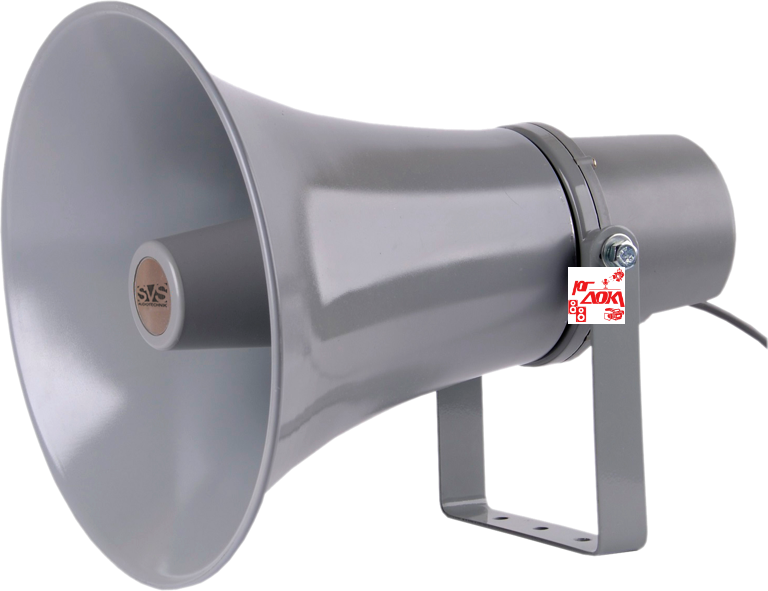 Рупорный громкоговоритель. Описание модели: Громкоговоритель рупорный с трансформатором. Мощность, Вт: 50-25-12.5. Частотный диапазон, Гц: 400 - 5 000. Чувствительность (SPL 1 Вт/1 м), дБ: 105. Подключение: Белый: 100В/50Вт